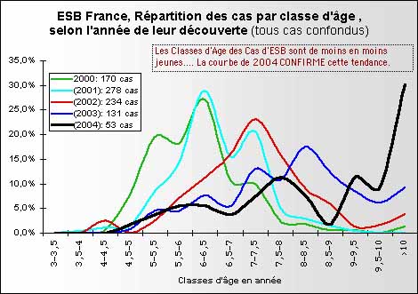 A partir de 2005 le nombre de cas annuels est insuffisant pour obtenir une courbe significative