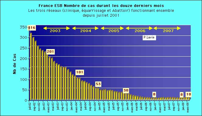 depuis Janvier 2007 la pente de la courbe montre la présence résiduelle de cas dont on devra préciser l'ORIGINE...