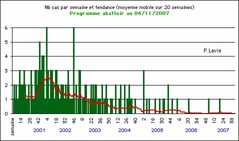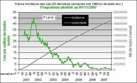 Fin 2006 la décroissance au dessous de 1 cas par million de bovins testés est atteinte...